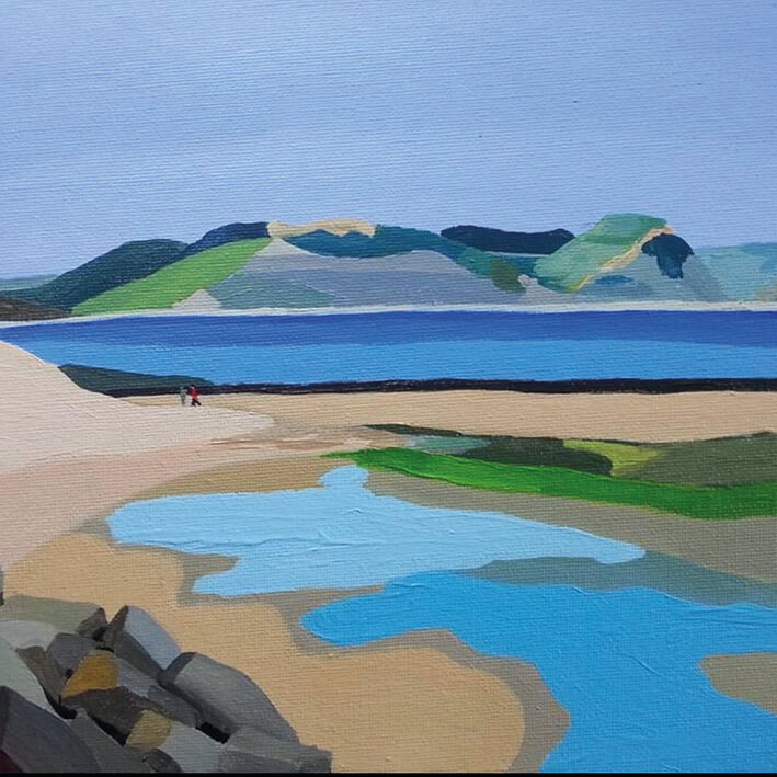 I capture Devon and Dorset’s sunlit hills, cliffs and bays in bright bold acrylics and flowing shapes – to spread joy and bring back those smiles and happy memories.